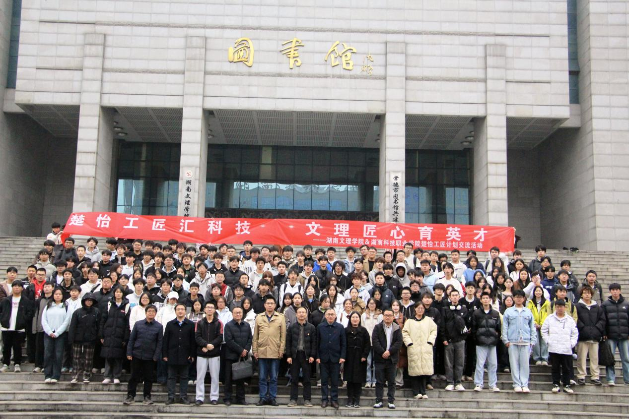 活动尾声,两校举行了授牌仪式,全体师生在图书馆门前合影留念。此次交流不仅让楚怡学子切身感受到了湖南文理学院的优良校园环境、先进教学设施与浓厚学术氛围,也进一步明确了努力方向。双方期待未来开展更多合作交流,传承楚怡精神,共育计算机专业优秀人才,助力科技强国建设。(软件学院 吴芳)