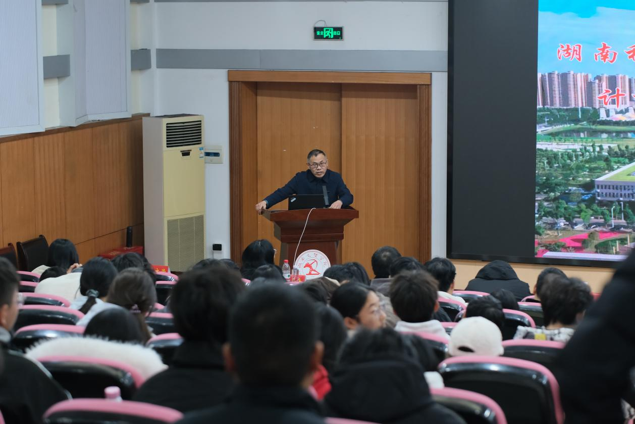 下午,专题讲座在湖南文理学院图书馆2楼报告厅举行。湖南文理学院计算机与电气工程学院院长杨民生教授致辞,介绍学校发展历程、办学特色及计算机领域成就,鼓励同学们勇攀科技高峰;计算机系主任任盛博士围绕 “计算机专业培养方案与人才培养成果特色”,从课程体系、实践教学等多维度答疑解惑,展示学科竞赛与科研创新成果,为学子专业规划提供参考。