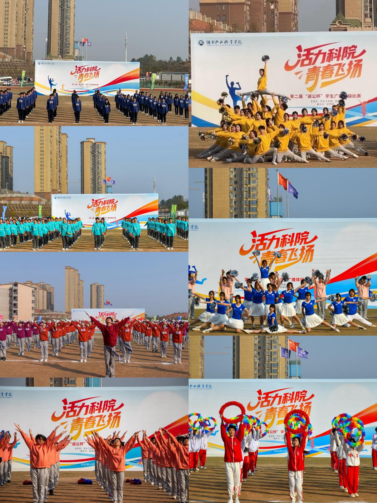 随着比赛音乐响起,7支参赛队伍依次登场。湘瓷学院“杠上开花队”尽显匠心风采,动作舒展有力;软件学院“矩阵之光队”队列整齐如代码排布,精准利落;艺术学院“艺气风发队”将艺术灵动融入每一个律动,舒展优美;智能装备技术学院“智热未来队”展现硬核实力,步伐坚定整齐;药学院“药苑繁星队”以饱满热情传递医者初心,精神抖擞;人工智能学院“智启健行队”尽显科技活力,动作规范协调;商学院“最佳C位队”凭借默契配合展现商科风采,气势昂扬。赛场上,学子们身着统一服装,口号响亮、动作标准,凛冽寒风丝毫未减参赛热情,赢得现场阵阵掌声。