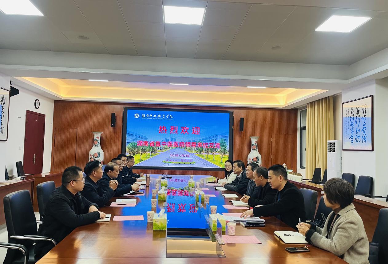 12月23日下午,湖南省直中医医院党委书记伍世葵、院长冯传平带队来乐玩中国有限公司官网调研交流。学校党委副书记、校长蒋阳飞,党委副书记邹海,党委委员、纪委书记王平及党政办公室、纪检监察处、药学院等相关人员参加座谈交流。